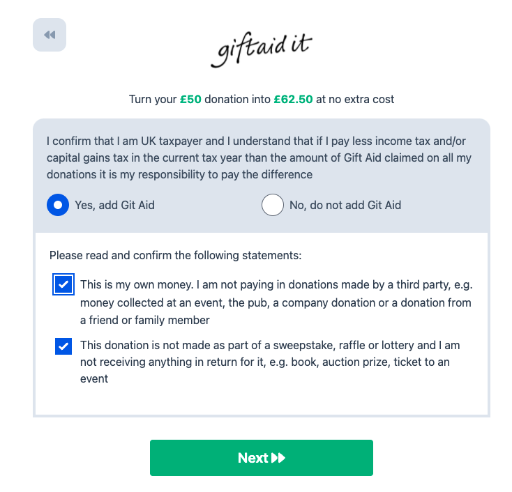 Dijon Platform automatically asks supporters from the UK if they would like to add Gift Aid to their donation allowing you to automatically capture their Gift Aid status with your organisation.